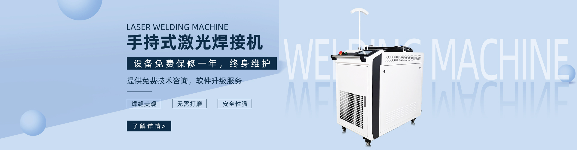 激光焊接機操作簡單,不需要專業技術人員,普通員工在幾分鐘內即可達到專業大師的焊接水平,激光焊接機移動式操作方便,是一種新型的焊接工藝,可實現鋁、鐵、銅、不銹鋼等金屬材料的點焊、對接...